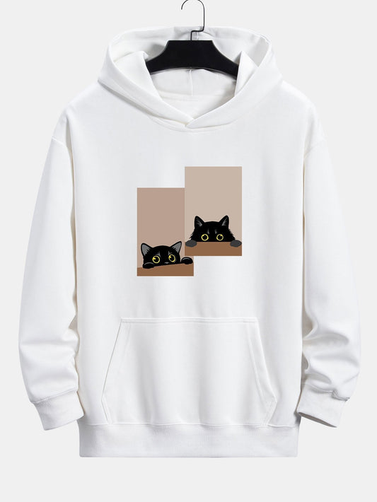 VARENO Kapuzenpullover mit schwarzem Katzen-Print