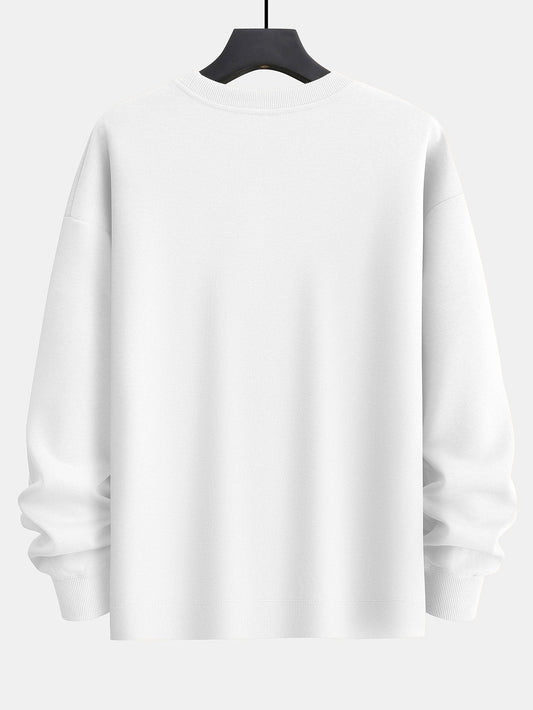 Lässiges, langärmliges, einfarbiges Strick-Sweatshirt mit Rundhalsausschnitt