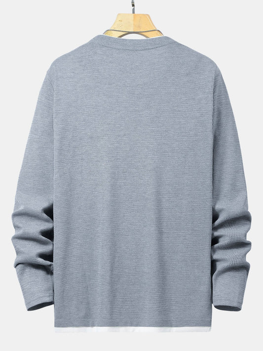 Lässiges Sweatshirt Fake Zweiteiler Einfarbig Rundhals Mode Lange Ärmel
