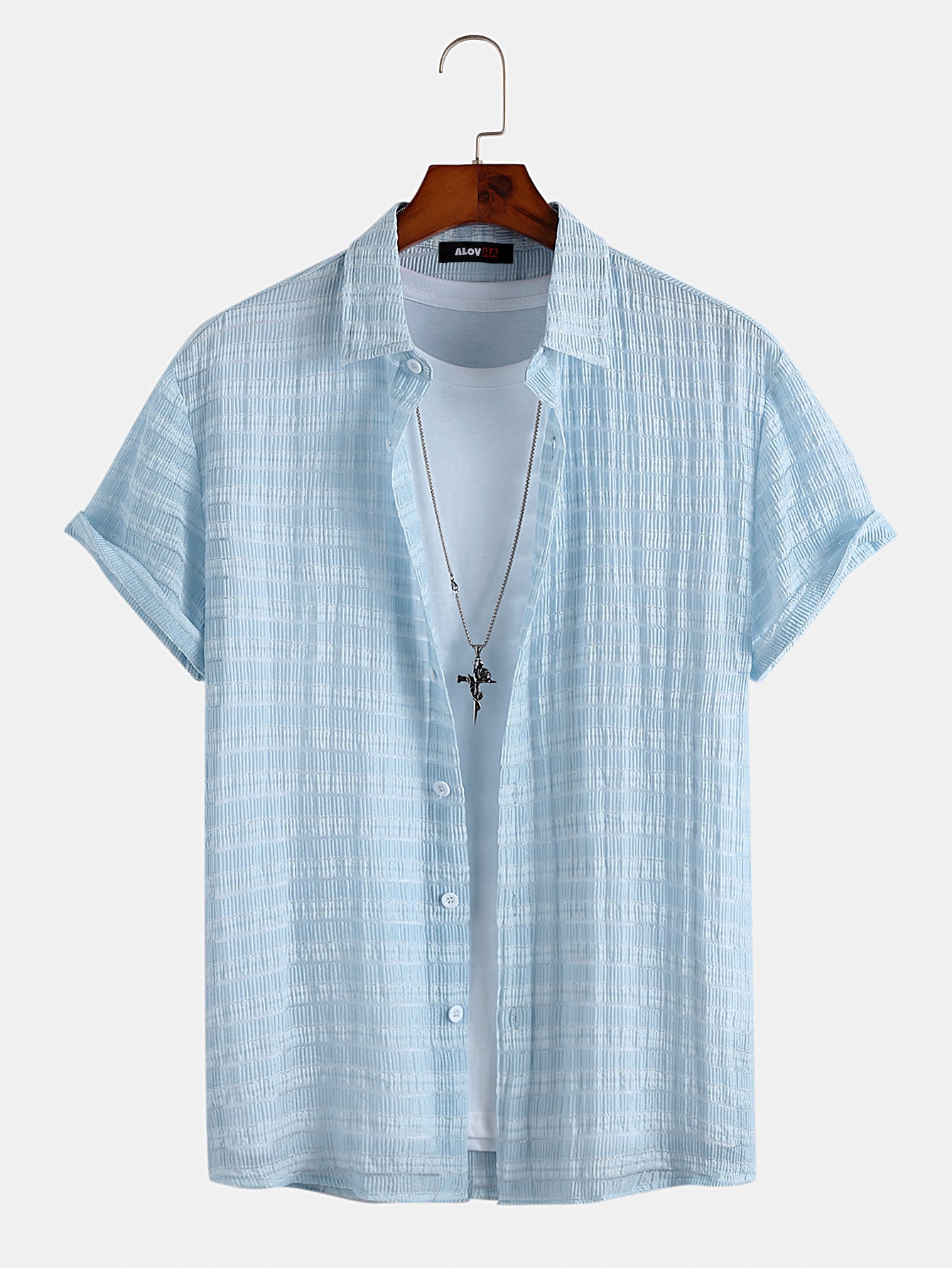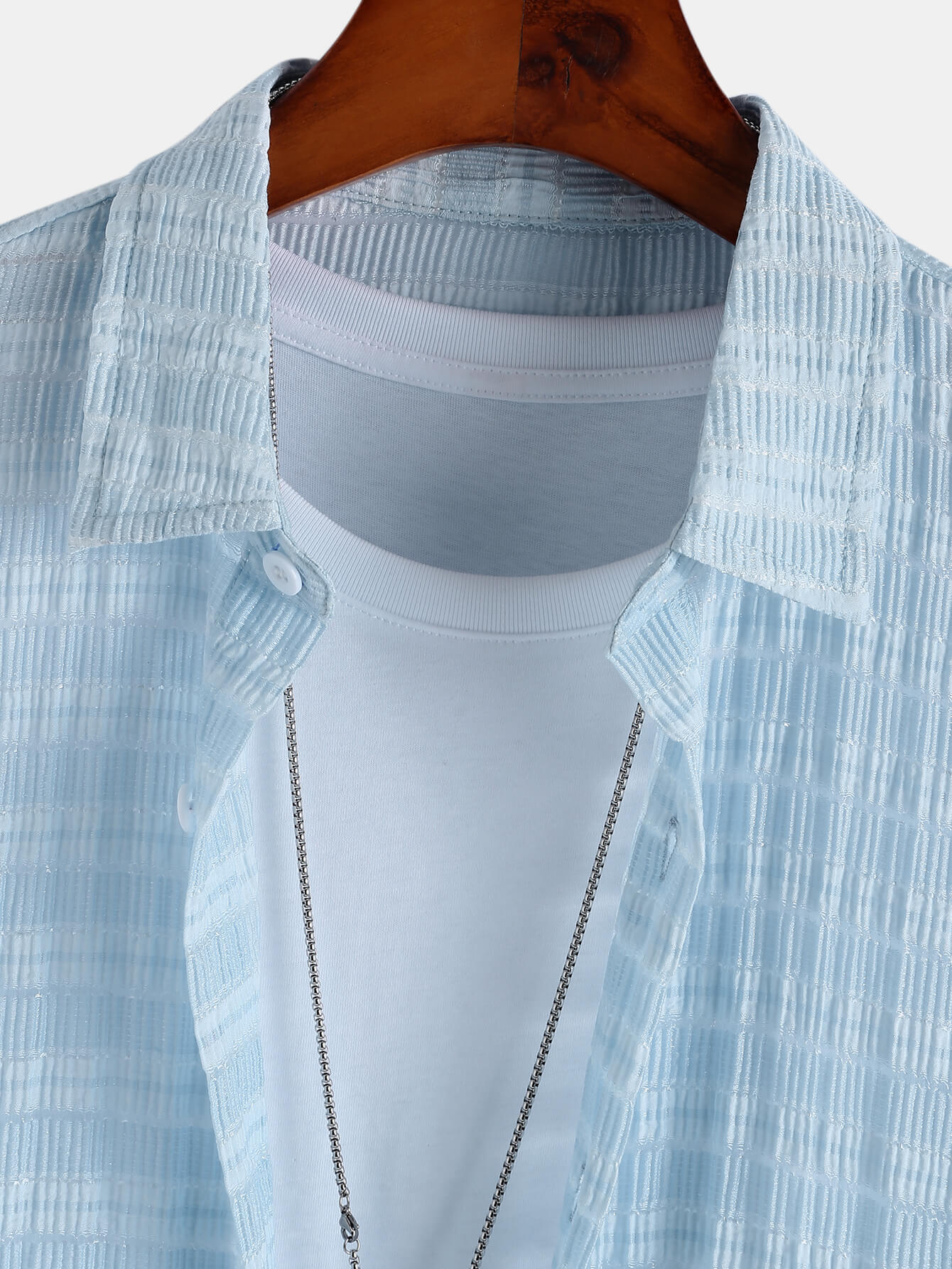 VARENO Blaues Kurzarm-Leinenhemd